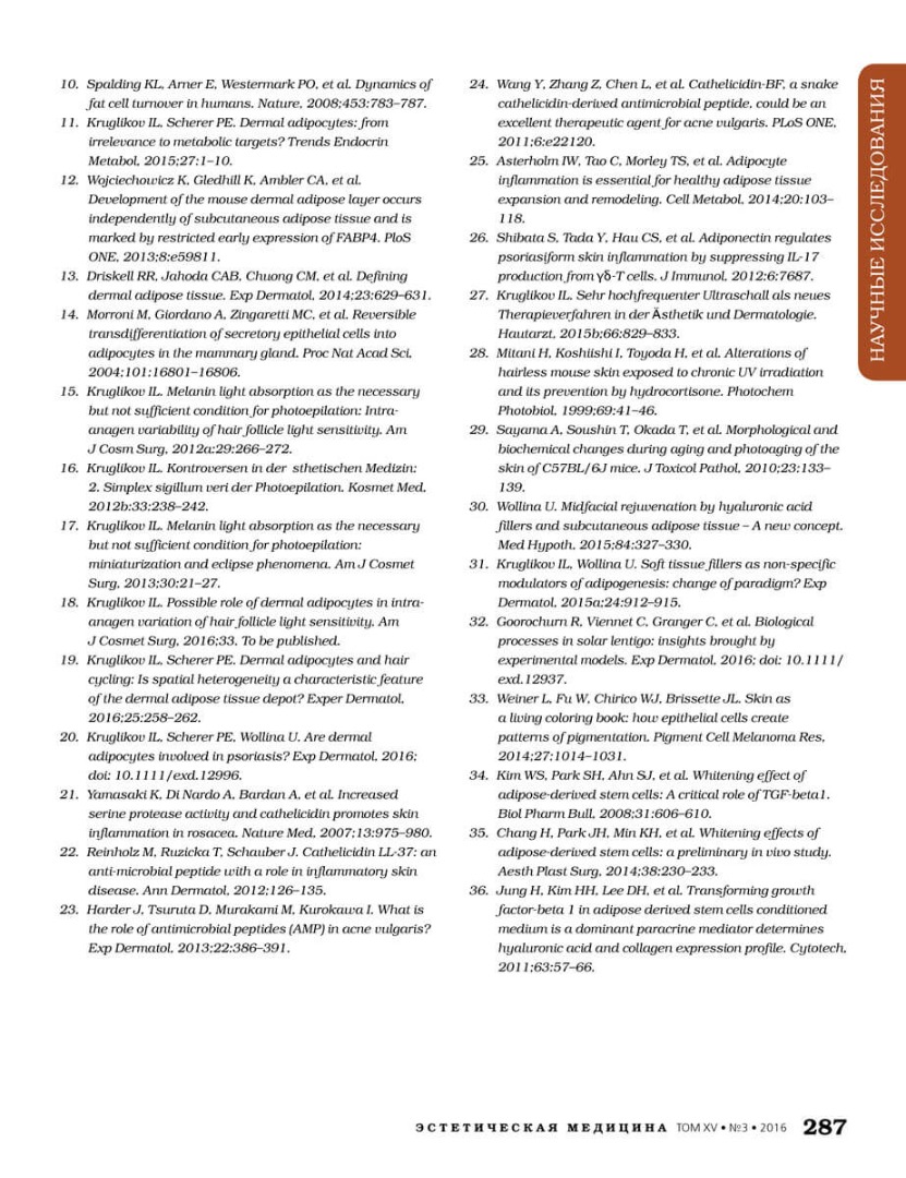 31. Kruglikov IL, Wollina U. Soft tissue fillers as non-specific modulators of adipogenesis: change of paradigm? Exp Dermatol, 2015a;24:912–915.