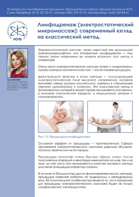 Лимфодренаж (электростатический микромассаж): современный взгляд на классический метод.