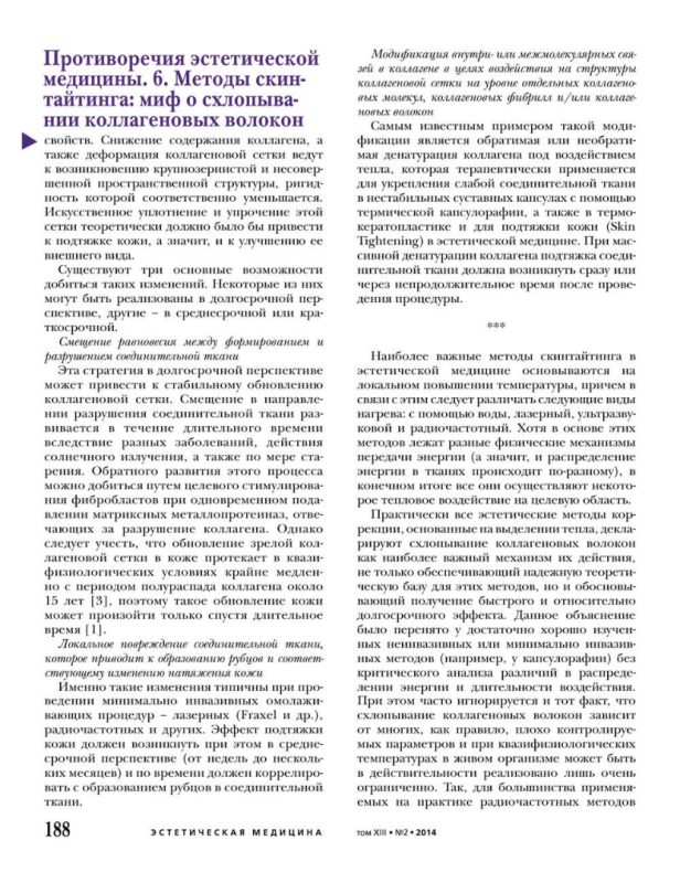 Противоречия эстетической медицины. 6. Методы скинтайтинга: миф о схлопывании коллагеновых волокон