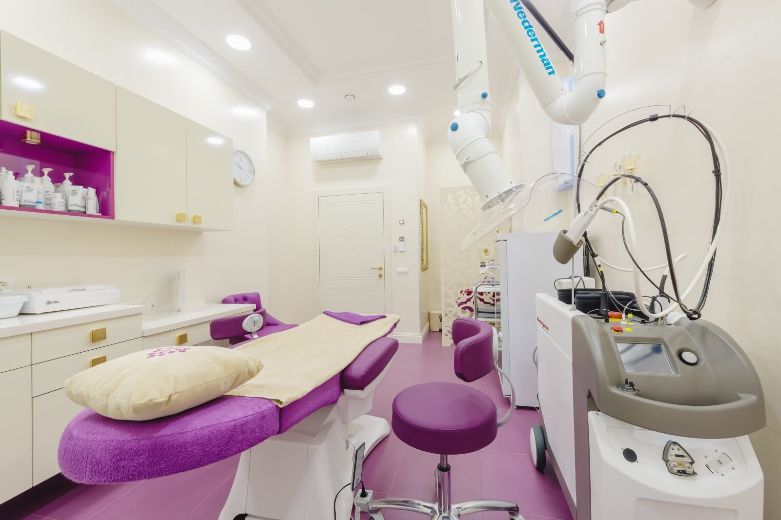 Высокотехнологичное оборудование органично дополнило элегантный интерьер салона, оформленный в изысканной фиолетовой гамме — кстати, именно этот оттенок Институт цвета Pantone объявил цветом 2018 года, поэтому мы желаем Центру красоты и эстетики LILALIC успехов и процветания в грядущем году и надеемся на дальнейшее продуктивное сотрудничество!