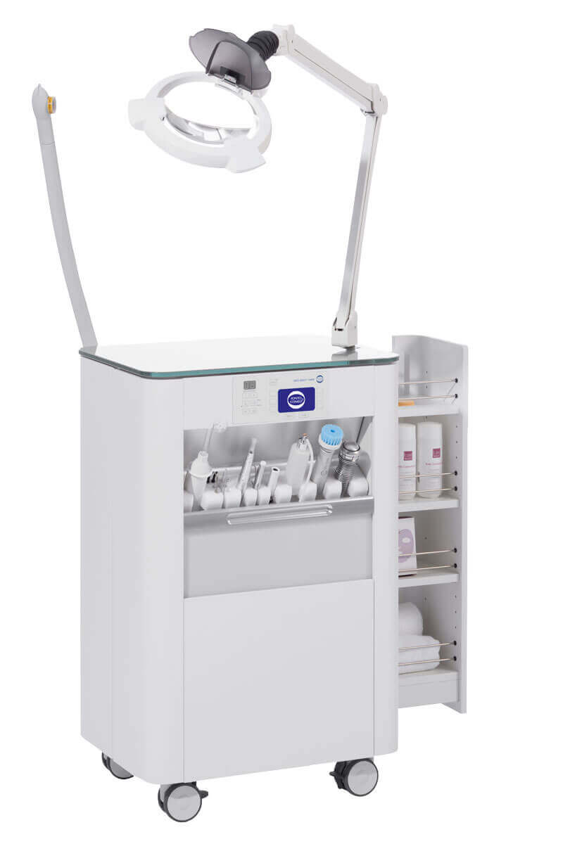 Косметологический комбайн с функциями распаривателя и косметологического аппарата — брашинг, вакуумная чистка и массаж, спрей, ионофорез, дезинкрустация, микромассаж, лимфодренаж, термотерапия, дарсонваль.