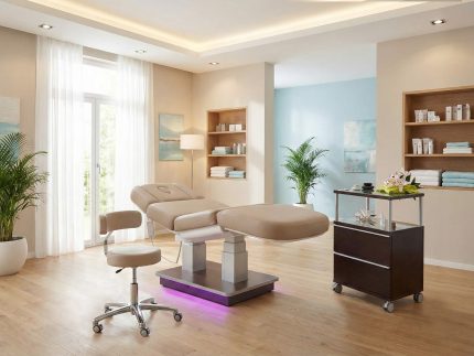 - кушетка с 4 моторами позволяет регулировать положение спинки, ножной части, высоты и угла сидения
